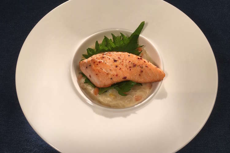 七味サーモンの和風リゾット添え レシピ 作り方 By レシピの女王 クックパッド